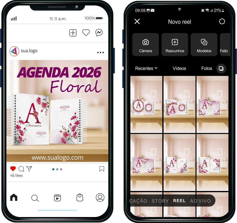 Além disso, o pacote “AGENDA 2026 FLORAL” inclui imagens exclusivas para mídias sociais, que podem ser utilizadas para divulgar o trabalho do profissional. Essas imagens são especialmente projetadas para destacar as agendas personalizadas e criar uma presença marcante online.