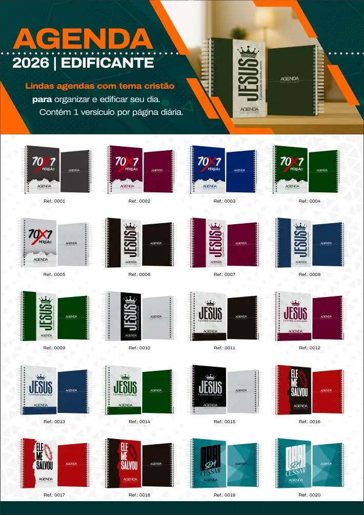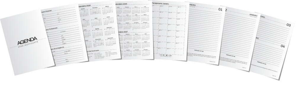 Não perca a oportunidade de adquirir o pacote “Agenda Edificante 2026” e elevar sua atuação no mercado de agendas personalizadas. Com miolo inspirador, capas versáteis, recursos visuais atraentes e layouts prontos para mídias sociais, você estará preparado para oferecer agendas especiais e promover seu negócio de forma eficaz. Adquira agora e dê um toque edificante aos seus projetos!